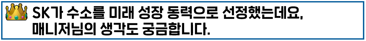네, 지금까지 수소사업개발그룹 박동준 매니저님과 SK가스의 신규 사업에 대해 알아보았습니다. 앞으로 울산에 세워질 거대한 수소 복합단지가 정말 기대되는데요! SK의 ESG경영에 발맞춰 지속가능한 경영을 추구하는 SK가스가 만들어 나갈 새로운 행보를 지켜봐 주시면 좋을 듯 합니다. 세계적인 Total Solution Provider가 되는 그 날까지, SK가스는 쉴 틈없이 달려나가겠습니다!:)