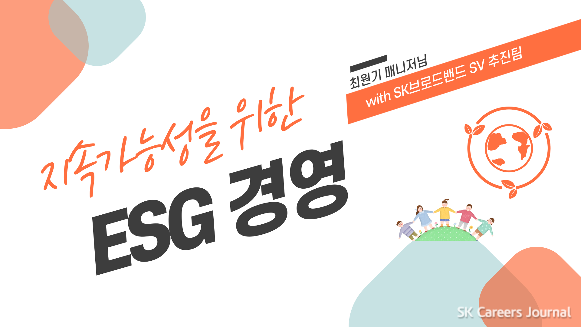 독자 여러분은 혹시 기업의 책임이 어디까지라고 생각하시나요? 기업의 책임과 관련해서 요즘 많은 기업과 소비자들이 ‘ESG경영’에 관심을 갖고 있습니다. SK브로드밴드도 지속 가능한 경영을 위해 힘을 쏟고 있다는 사실, 알고 계신가요? 오늘은 이와 관련하여 ESG경영이 무엇인지와 SK브로드밴드 SV(Social Value)추진팀이 어떤 일을 하고 있는지를 알아보겠습니다!