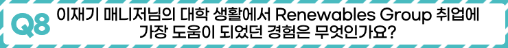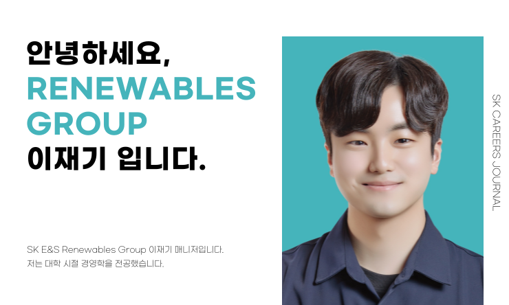 안녕하세요. SK E&S Renewables Group 이재기 매니저입니다. 저는 대학 시절 경영학을 전공했습니다. Renewables Group 직무를 수행하며 다양한 프로젝트의 사업성을 평가할 때, 경영학을 전공한 것이 재무적 측면에서 많은 도움이 됩니다.