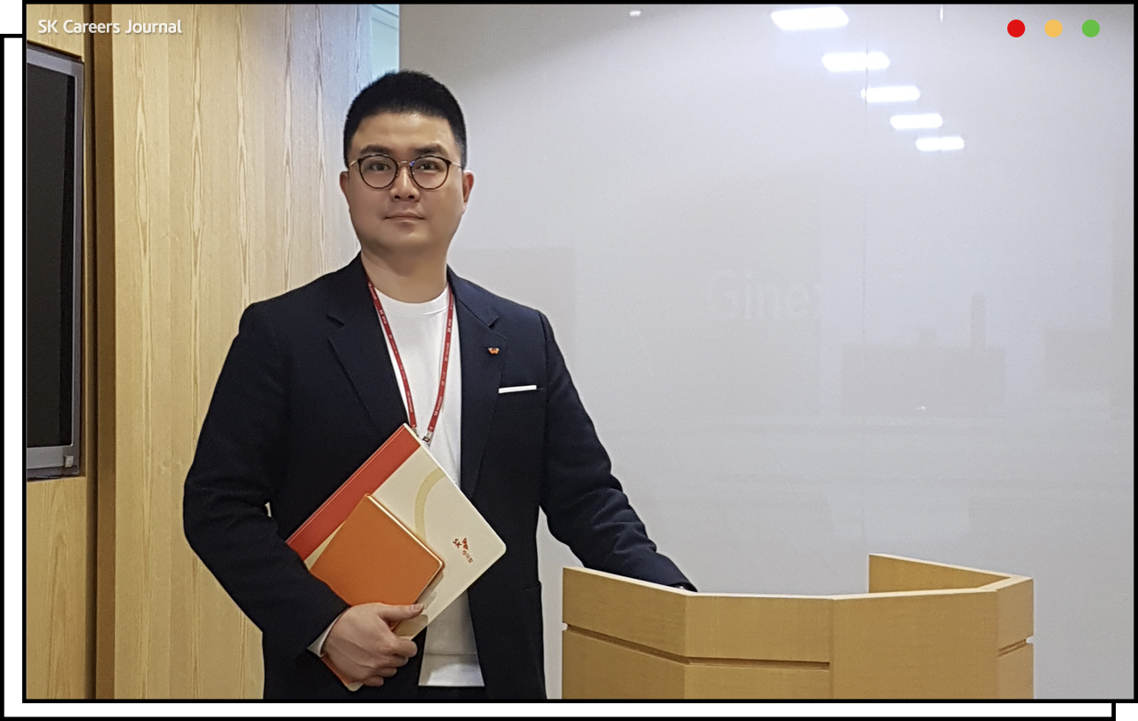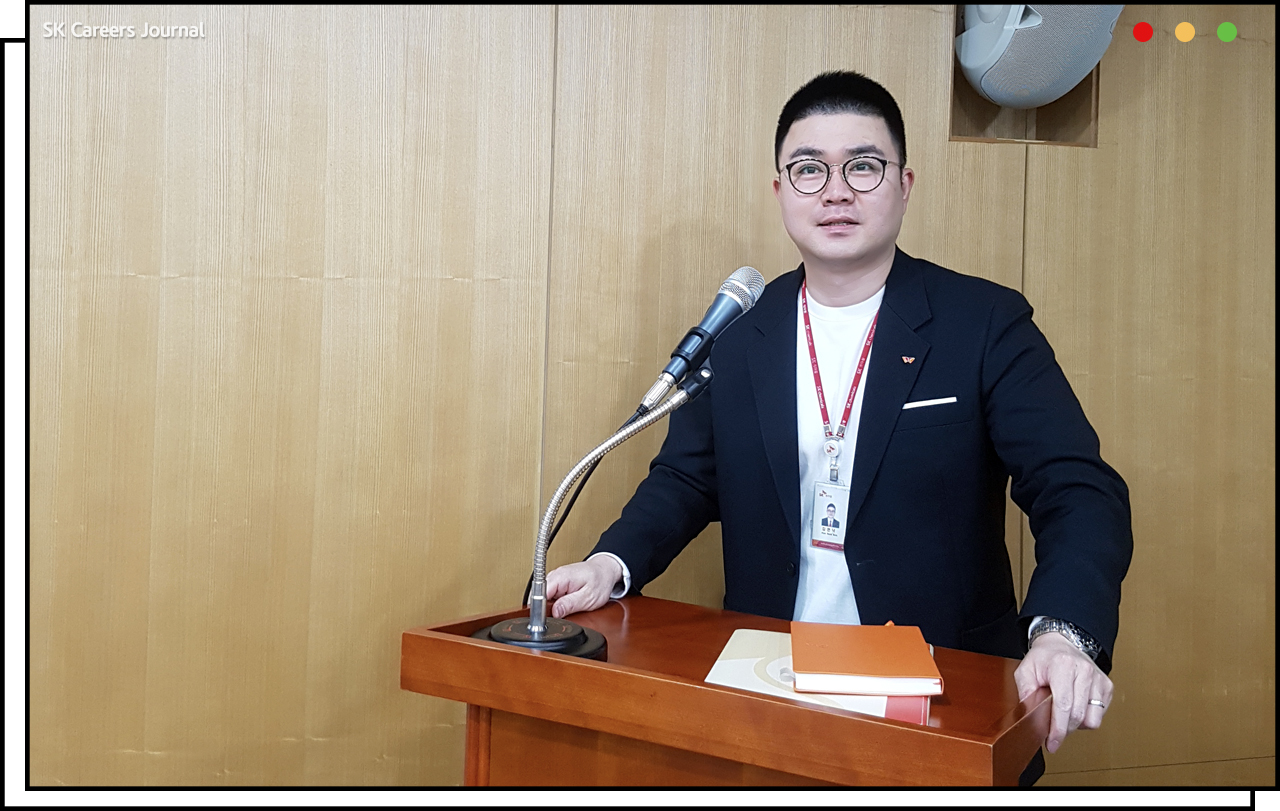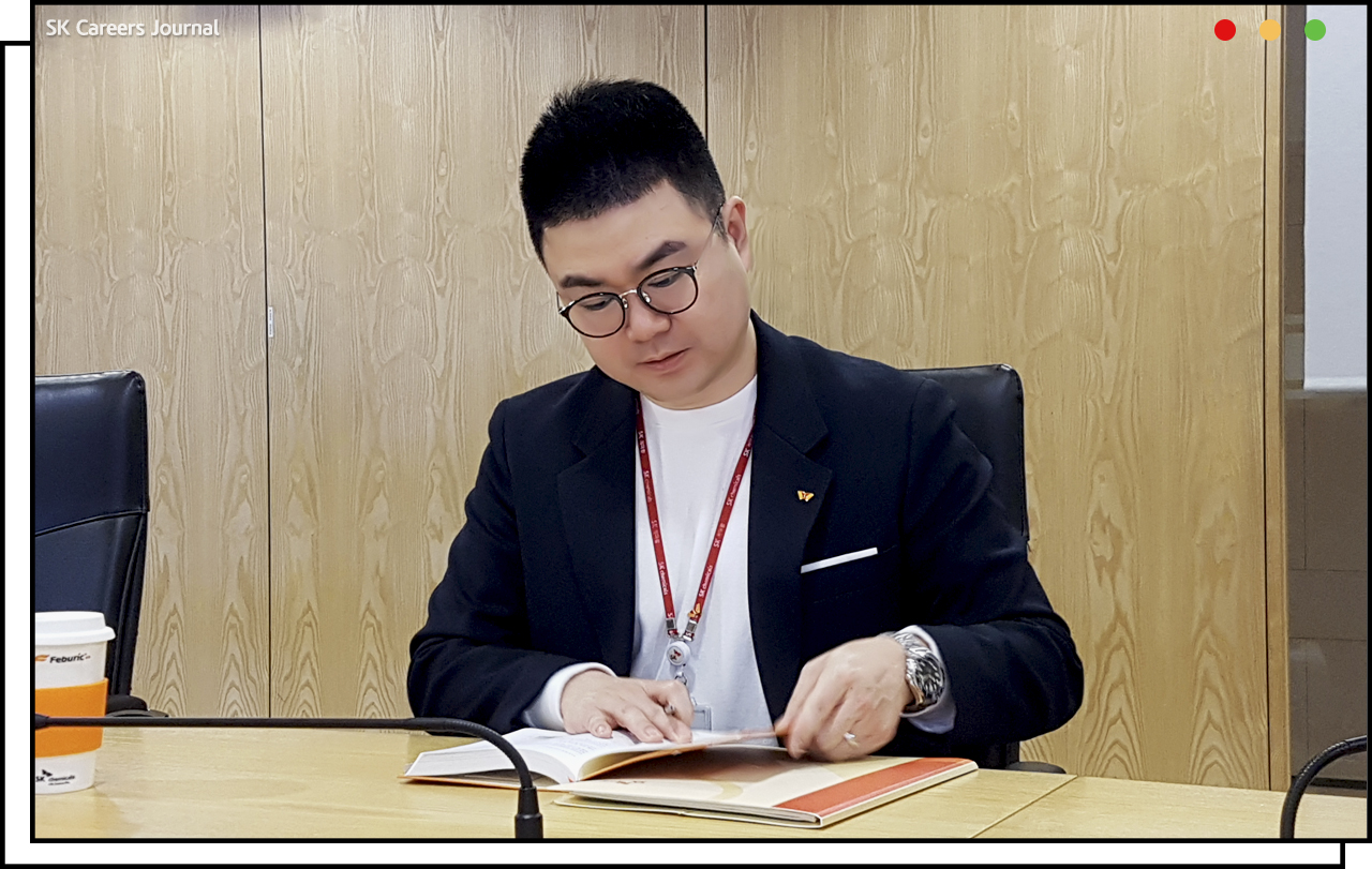 안녕하세요. SK케미칼 인사팀에서 근무하고 있는 김한낙 매니저입니다. 인사업무는 15년 전 인사팀 인턴을 시작으로 운명처럼 계속 하는 중입니다. 현재는 인사기획 및 인사운영 업무를 하고 있어요. 쉽게 말하면 인사발령, 조직설계, 승진평가 등의 업무를 한다고 이해하면 되겠네요.
