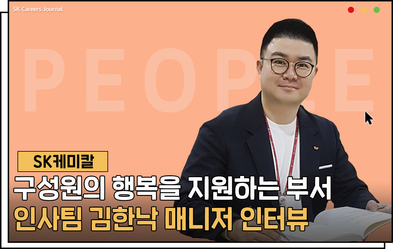 많은 취준생들이 선호하는 부서인 ‘인사팀’! SK케미칼 인사팀 입사를 준비하고 계신 분들도 많을 것 같은데요~ 그래서 오늘은 인사팀 김한낙 매니저님과 함께 인터뷰를 나눠보았습니다. 인사팀의업무와 매니저님의 노하우, 그리고 취준생들을 향한 따뜻한 응원 메시지까지! 놓칠 수 없는 인터뷰, 지금 확인하시죠!
