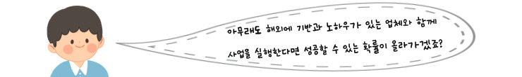모든 기업들이 Global 진출을 꿈꾸고 있습니다. 아무래도 국내 시장에서 성장할 수 있는 것이 한계가 있기 때문이죠. 저희 회사도 Quantum Jump(양자도약) 하기 위해 Global 진출에 박차를 가하고 있다고 생각합니다. 그것이 단순히 매출 Size 뿐만 아닌 회사의 Value 증대를 위해 꼭 필요한 부분이기 때문이죠.