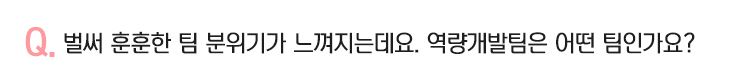 저희 팀 분위기는 전사에서 유명할 정도로 좋아요. 팀장님이 오픈 커뮤니케이션을 지향하셔서 편하게 얘기하는 분위기를 만들어 주시거든요.