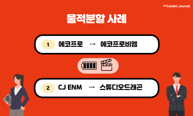 지금까지는 물적분할과 인적분할을 비롯한 네 가지의 개념을 설명하면서 주로 SK이노베이션의 경우를 예시로 사용했습니다. 그런데 혹시 다른 회사들도 이처럼 사업부를 법인으로 분리시켜서 관리하는지 궁금하셨나요? 그래서 이번에는 물적분할과 인적분할을 선택한 다른 기업들의 사례를 소개하겠습니다.