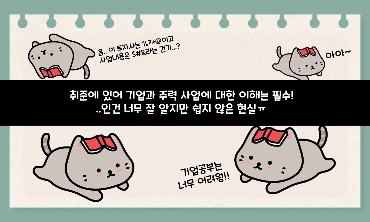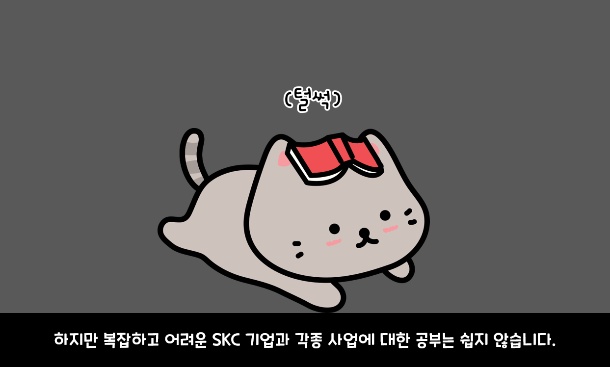 동에 번쩍 서에 번쩍! 최근 흘러 넘치는 활약상을 보여주고 있는 고부가가치 소재전문기업 SKC, 키워드로 일목요연하게 정리해 드립니다!🤗 지난 기사에서도 살펴볼 수 있었듯 SKC는 최근 성공적인 사업모델 혁신과 신성장으로 최태원 SK그룹 회장의 극찬과 함께 업계와 그룹 관계자들 사이에서 큰 주목을 받고 있습니다. 주요 사업 전 영역에서 실적 개선을 보이고 있으며, <Financial Story 실행을 통한 Market Value 제고> 우수 사례로 2021년 SK그룹 상 <Synergy상>을 수상하기도 했었죠! “왜 이렇게 잘나가(?)~🤭”라는 말이 절로 나오는 승승장구 SKC! 기업이 크게 성장하고 있는 만큼 과연 이 곳은 어떤 곳인지 호기심도 커지고, 채용에 대한 관심도 정말 많이 늘어나고 있을 것 같은데요, 오늘은 SKC 입사를 꿈꾸는 취준생의 입장에서 실질적으로 겪을 수 있는 어려움을 파악하고 도움이 될 만한 콘텐츠를 준비해 보았습니다 :) 먼저 취준생 냥이씨의 상황을 살펴보며 이야기를 시작해 보겠습니다!