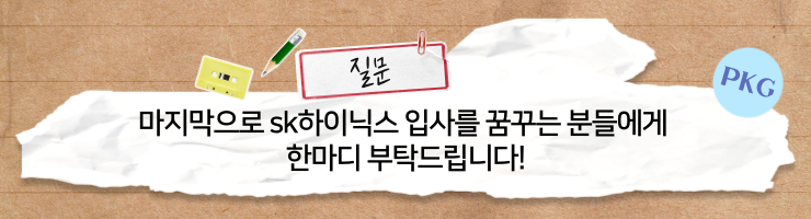 SK하이닉스 패키지 개발 조직의 이야기, 어떠셨나요? 반도체 분야에서 반도체 패키징이 어떤 역할을 하는지, 패키지 개발을 담당하는 조직은 어떤 일을 하는지 PKG 조직의 예비 하이지니어님들이 알아갈 수 있는 시간이 되었기를 바랍니다! 저 에디터 또한 조금 더 다양한 SK하이닉스의 이야기를 들려드릴 수 있도록 노력하겠습니다!