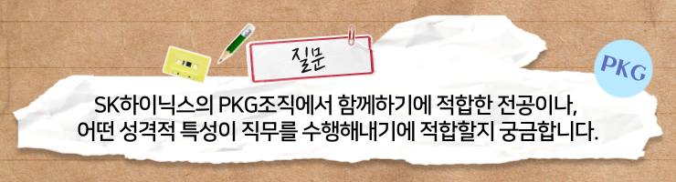 SK하이닉스 패키지 개발 조직의 이야기, 어떠셨나요? 반도체 분야에서 반도체 패키징이 어떤 역할을 하는지, 패키지 개발을 담당하는 조직은 어떤 일을 하는지 PKG 조직의 예비 하이지니어님들이 알아갈 수 있는 시간이 되었기를 바랍니다! 저 에디터 또한 조금 더 다양한 SK하이닉스의 이야기를 들려드릴 수 있도록 노력하겠습니다!
