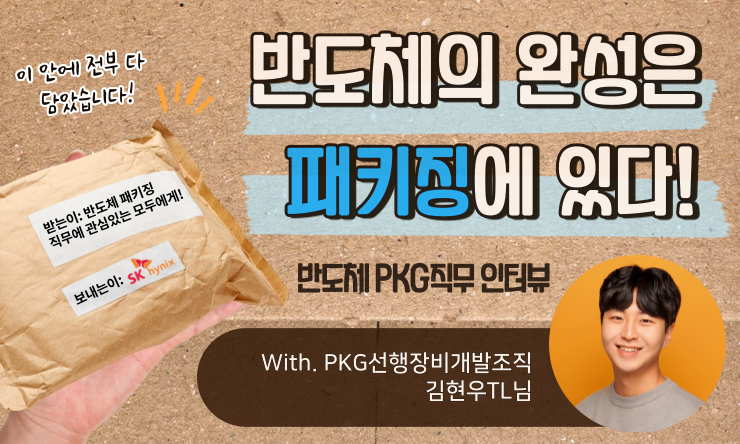반도체만 잘 만들면 좋은 반도체일까요? 반도체의 ‘패키징’까지 잘 마쳐야 비로소 완벽한 반도체라고 할 수 있습니다! 최근 5G, 인공지능(AI), 자율주행 등의 첨단기술이 상용화되면서 반도체 수요가 끊임없이 증가하고 있는데요. 이런 반도체가 최고의 성능을 선보이고, 외부적 요인으로부터 보호해주는 패키징(Packaging) 기술이 반도체의 가치를 극대화시키는 중요한 역할을 하고 있습니다. 그렇다면, SK하이닉스의 패키지 개발 조직은 어떤 곳인지 TL님과의 인터뷰를 통해 알아보도록 할까요?