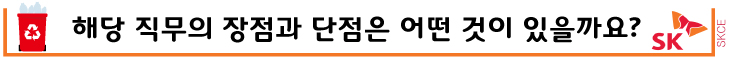 네 지금까지 SK케미칼의 친환경소재연구실에 대해 알아보았는데, 어떠셨나요? 저는 개인적으로 폐 자원들의 품질이 균일하지 못해서 연구에 어려움을 겪고 있다는 말을 듣고 일상생활에서의 올바른 분리수거가 환경을 생각하는 가장 쉽고 좋은 방법이라고 생각했습니다. 그리고 산업의 변화속도가 더욱 빨라지는 현대사회에서 제품의 기술 발전만큼이나 리사이클링 기술의 발전도 매우 중요하다고 생각했습니다. 그리고 당장의 이득만을 생각하지 않고 환경을 생각하는 SK케미칼의 모습도 볼 수 있었는데요! 모든 폐자원이 자원이 되는 그 날까지 김하늘 매니저님을 응원하도록 하겠습니다. 감사합니다!