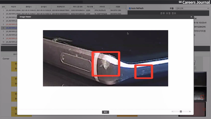 원본 이미지에서는 핸드폰의 전체 이미지를 볼 수 있는데 Segmentation 분석 기법으로 선정된 이미지를 가지고 각각의 부위별로 CNN 모델을 통해 파손된 부위를 찾게 됩니다.