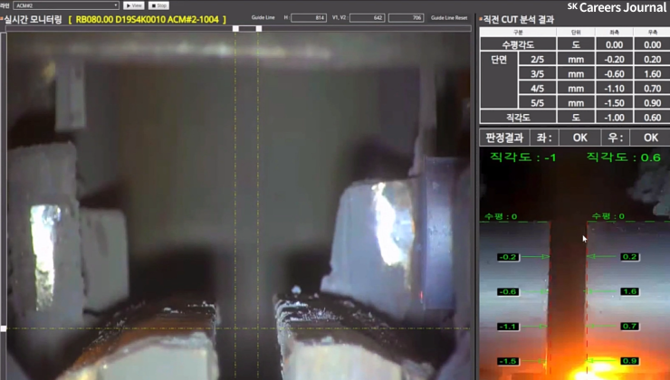 휠이 철을 자르는 과정에서 열 때문에 휠이 휘는 현상이 발생하곤 하는데요, 이러한 현상의 해결방안으로 철강 절단면 영상 계측 및 불량 분류 솔루션이 활용될 수 있습니다.