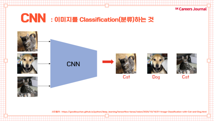 CNN 모델은 이미지를 분류하는 모델인데요, 쉽게 말하면 이미지 내의 single object가 개인지 고양이인지를 분류하는 모델이라고 이해할 수 있습니다.