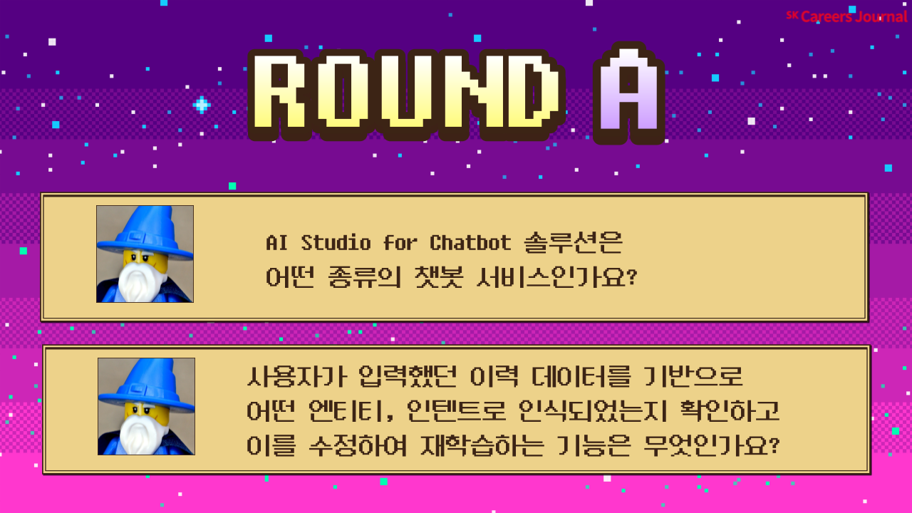 ROUND A의 A는 AI였군요! ROUND A를 통해 SK㈜ C&C의 AI Studio for Chatbot 솔루션에 대해 살펴봤는데요. SK㈜ C&C AI 챗봇 서비스의 A to Z에 대해 알 수 있었던 ROUND였습니다.