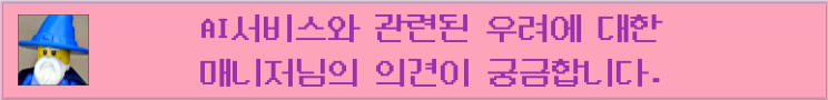 Q7. 인간에게 편리함을 주고 있는 챗봇서비스, 그러나 이루다 논란, AI로 인한 인간의 일자리 감축 문제 등 챗봇서비스를 포함한 AI 기술 자체에 대해 많은 우려가 있는 것 또한 사실입니다. 이러한 문제에 대해 매니저님의 의견이 궁금합니다.