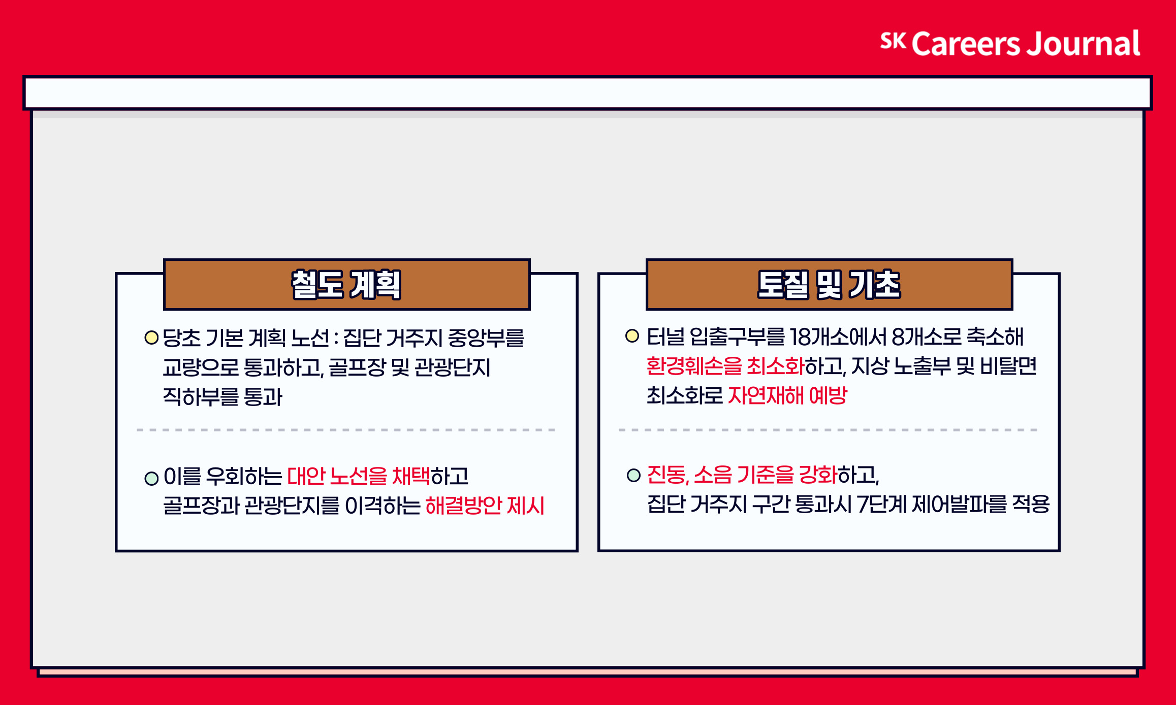 SK에코플랜트가 토목 기술형 입찰에서 수주에 성공했다는 소식, 알고 계셨나요? 이번 프로젝트는 강릉에서 제진까지 이어지는 단선전철 사업인데요, 1967년 노선 폐지 후 단절된 동해북부선의 남측 구간을 연결하는 공사입니다. 해당 공사에 대한 자세한 소식 전해드리기 위해 사업운영총괄 에코인프라부문 KGID사업그룹 성낙근 프로님과의 인터뷰를 진행하였습니다!