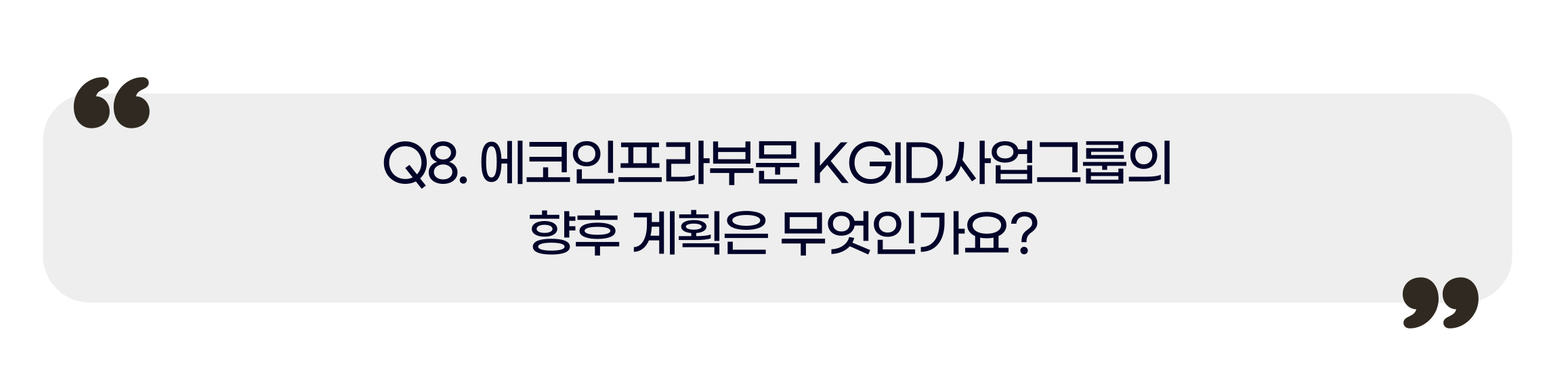 에코인프라부문 KGID사업그룹은 앞으로도 국내 친환경사업에 대한 경쟁력을 강화할 것입니다. 또한 Project 수주를 통해 회사의 ESG경영에 적극적으로 기여하고자 합니다.