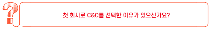 비록 석사 졸업을 했지만 저 스스로 데이터 분석 경험이 많다고 생각하지 않았습니다. 다양한 도메인의 데이터를 다루고 분석하는 능력을 갖추는 것이 제 커리어의 가장 중요한 핵심이라고 생각했습니다. 많은 IT 기업 중 C&C가 다양한 도메인에 닿을 수 있는 가장 최적의 회사라고 생각을 해서 입사를 결정하게 되었습니다.