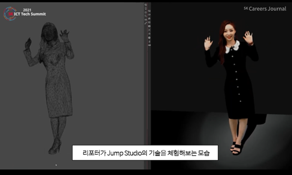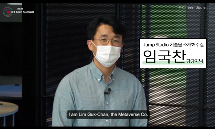 체험형 전시 부분에서는 SK텔레콤의 Metaverse CO, jump Studio 촬영 기술부터 운용까지 담당하고 계시는 임국찬 담당자님께서 준비해주신 ‘Jump Studio 촬영 기술 소개’에 대해 알아보았습니다. ‘체험형 전시’는 리포터께서 직접 기술에 참여해보는 프로그램이라는 점에서 시연형과 차이가 있는데요. 영상으로 참여하는 모습을 직접 볼 수 있으니 더욱 직접적으로 참여하는 느낌을 받을 수 있었습니다.