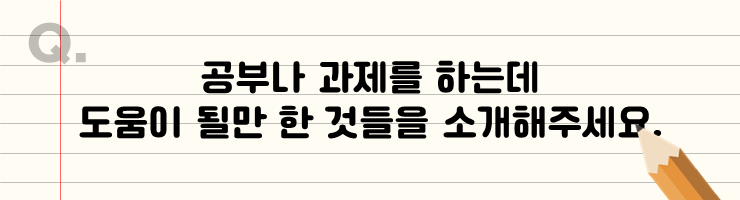 저는 캠스캐너라는 어플과 TI 공학용 계산기를 추천해요. 먼저, 캠스캐너는 언제 어디서든 과제나 시험답안지를 스캔해서 쉽게 제출할 수 있어서 정말 유용해요. 다음으로, 공대생이시라면 2학년 이상부터는 전공에서 복잡한 수식을 많이 다루기 때문에 TI라는 공학용 계산기를 추천해요. TI는 복잡한 수식들도 쉽게 풀 수 있어서 전공 문제를 풀 때 정말 유용해요.