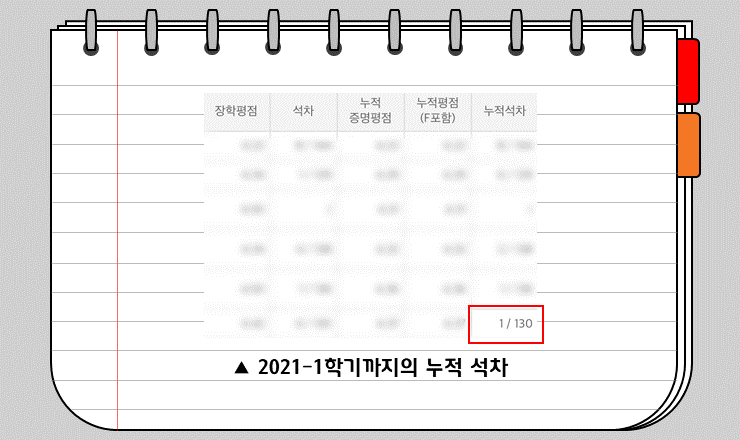 2021-1학기까지 누적 학점은 4.37입니다. 여태껏 받았던, 가장 좋은 학기 성적은 4.5이고 가장 성적이 못 나왔던 학기는 4.22였어요. 운 좋게 과에서 1등을 두 번 해봤습니다.