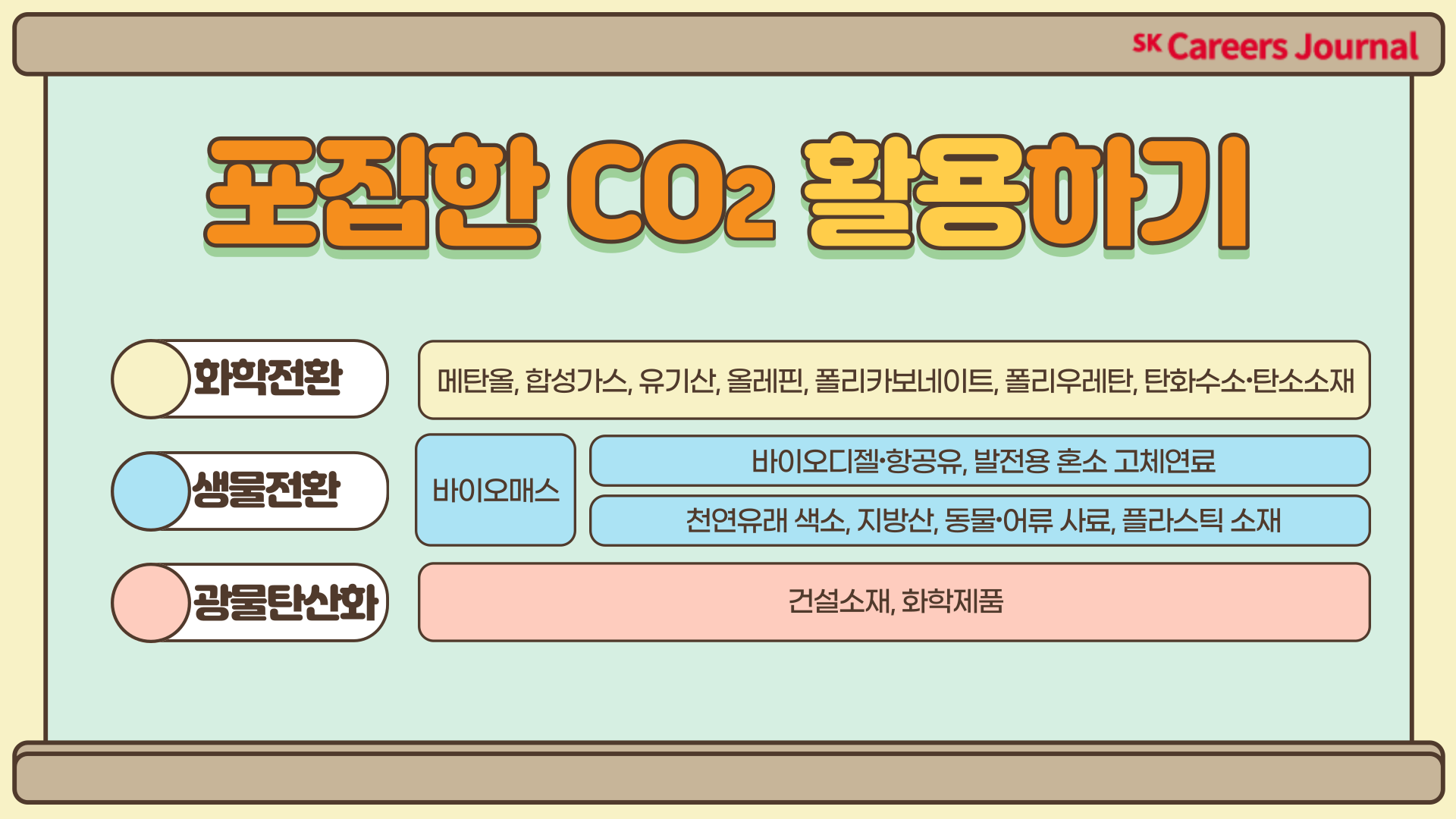 포집한 CO2를 저장하는 대신 자원으로도 활용이 가능해요! 이를 CO2 포집 및 활용(CCU) 기술이라고 해요.