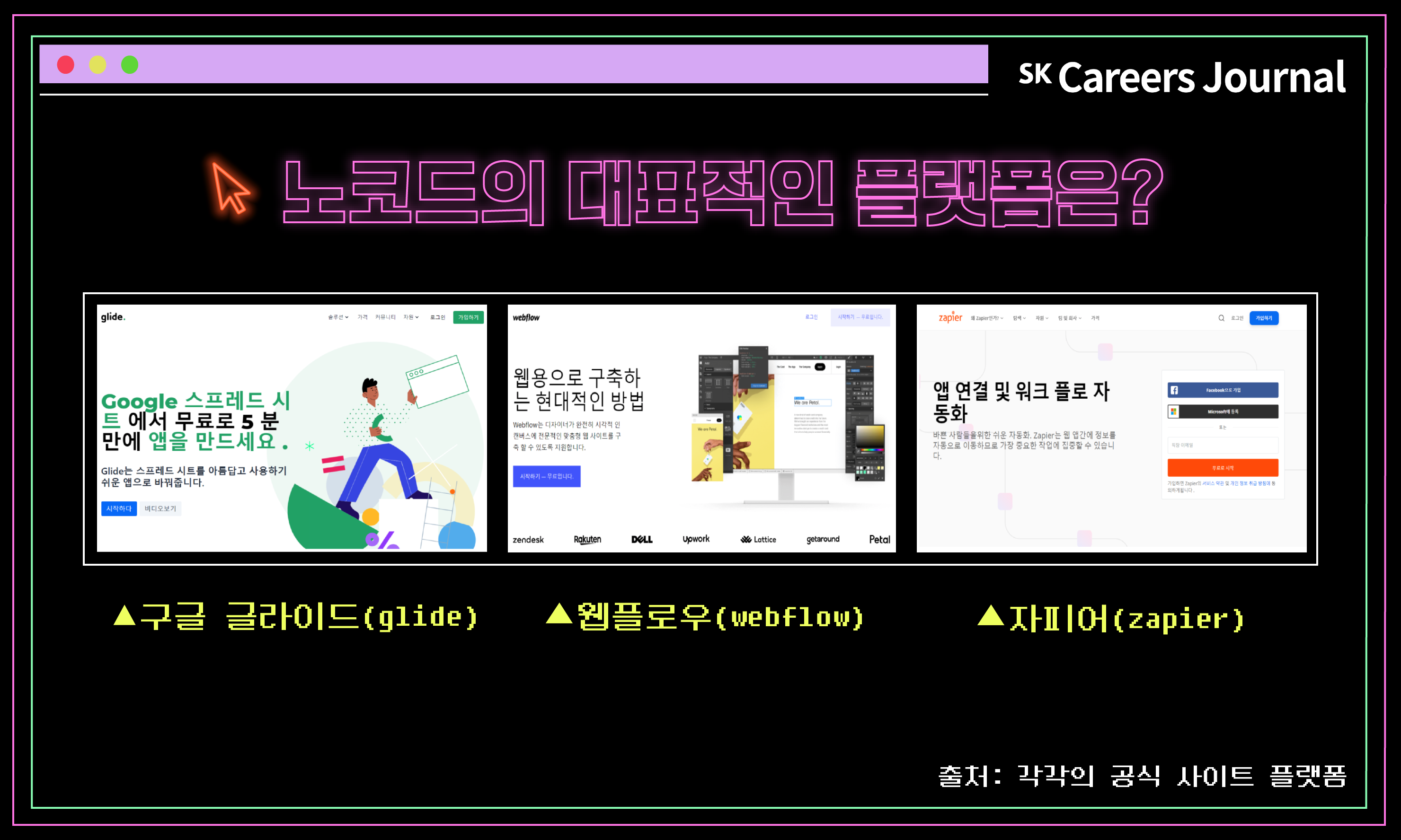 이를 반영해 최근 개발 경험이 거의 없는 사람들을 위한 ‘개발 플랫폼 서비스’ 제공이 급증하고 있는데요. 일명 ‘노코드(No Code)’라고 부른다고 합니다. 어떤 것인지 함께 알아보러 가실까요?