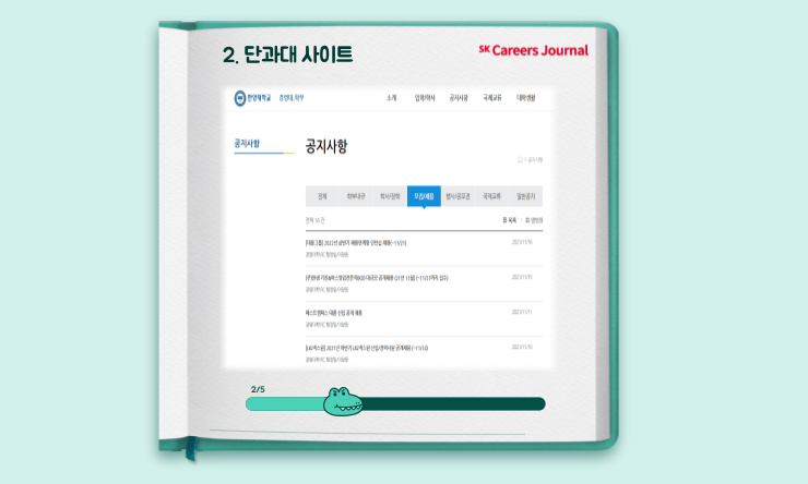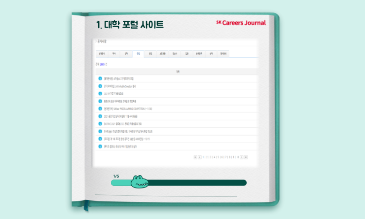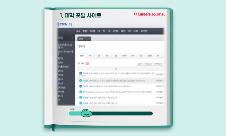 학교 포털사이트는 대학생 분들에게 가장 친숙한 곳이지만, 정보를 어떻게 찾아야 할 지 모르는 분들도 많이 계십니다. 포털사이트를 주기적으로 방문하는 습관을 들이신다면 정보 탐색의 기회가 훨씬 더 많이 주어질 것입니다 :)