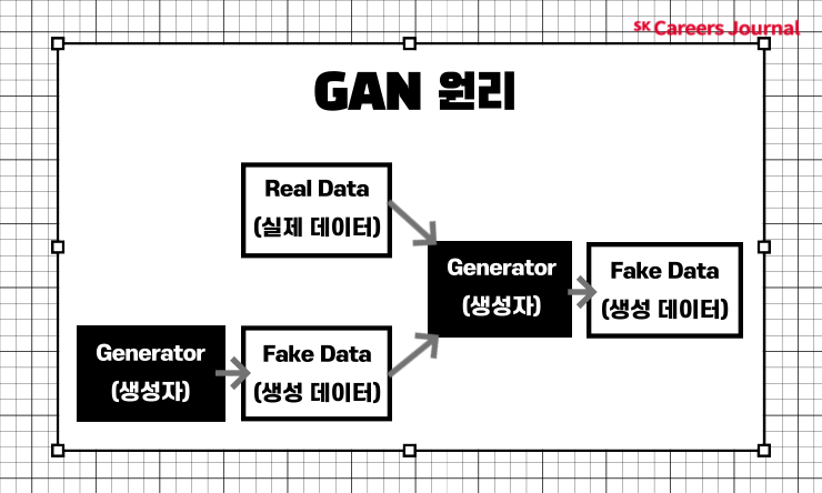 생성자는 실제 데이터를 학습하고 이를 바탕으로 거짓 데이터를 생성하며 실제에 가까운 거짓 데이터를 생성하는 것이 목적입니다. 이와 다르게, 감별자는 생성자가 내놓은 데이터가 실제인지 거짓인지 판별하도록 학습합니다. 진짜 같은 가짜를 생성하는 생성자와 이에 대한 진위를 판별하는 감별자 간의 경쟁을 통해 더욱 고도화된 진짜 같은 가짜 이미지를 만들 수 있는 것입니다.