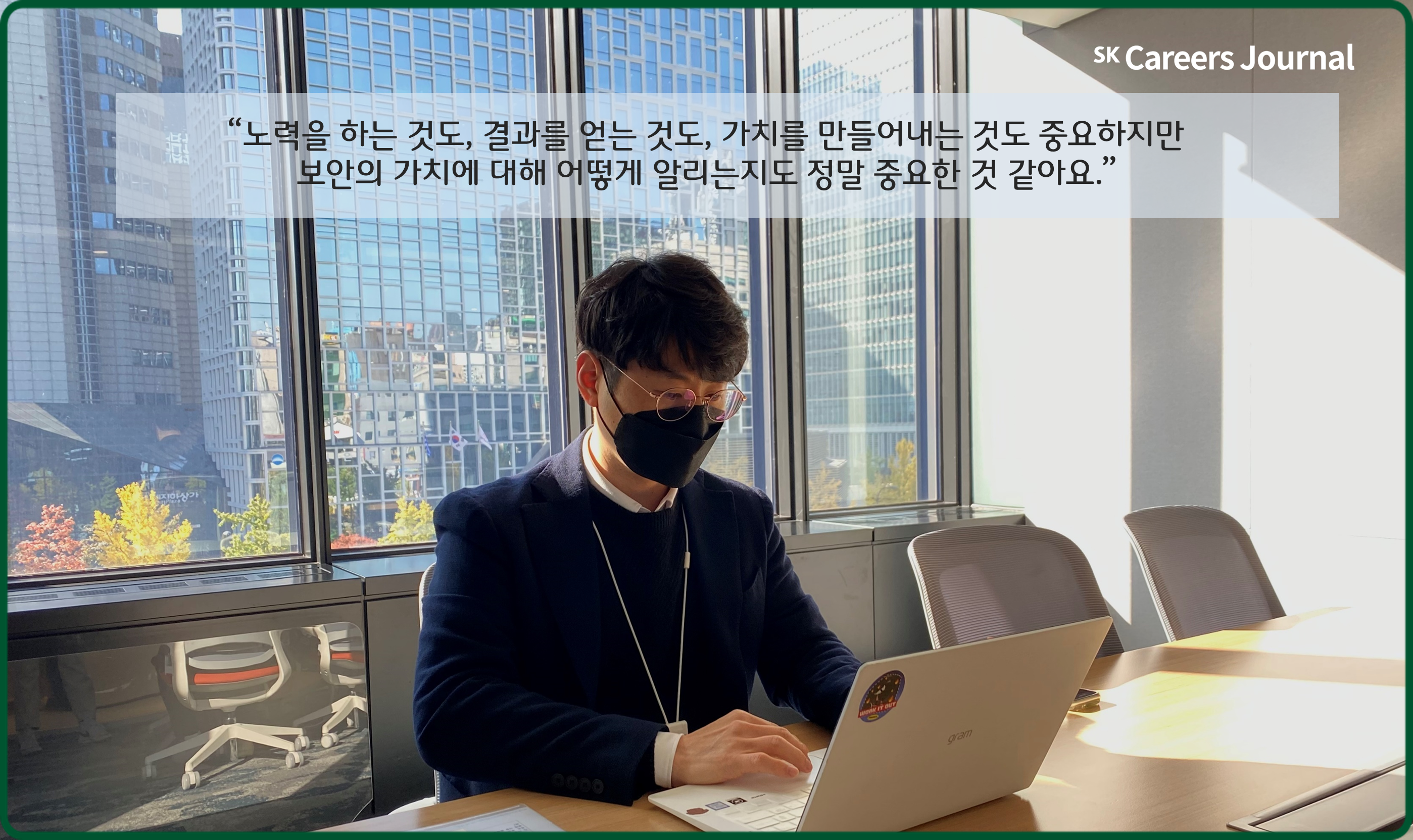 우리가 살아가는 오늘날에는 정보를 얻는 것만큼이나 지키는 것 역시도 매우 중요한 일이 되었는데요. 특히나 ESG 경영이 화두가 되는 요즘, 고객의 개인정보 유출사고는 ESG의 사회(social)분야의 중요한 축이라고 할 수 있습니다. SK네트웍스의 소중한 정보를 언제나 지켜주는 정보보호센터의 배지환 매니저님을 만나봤습니다!