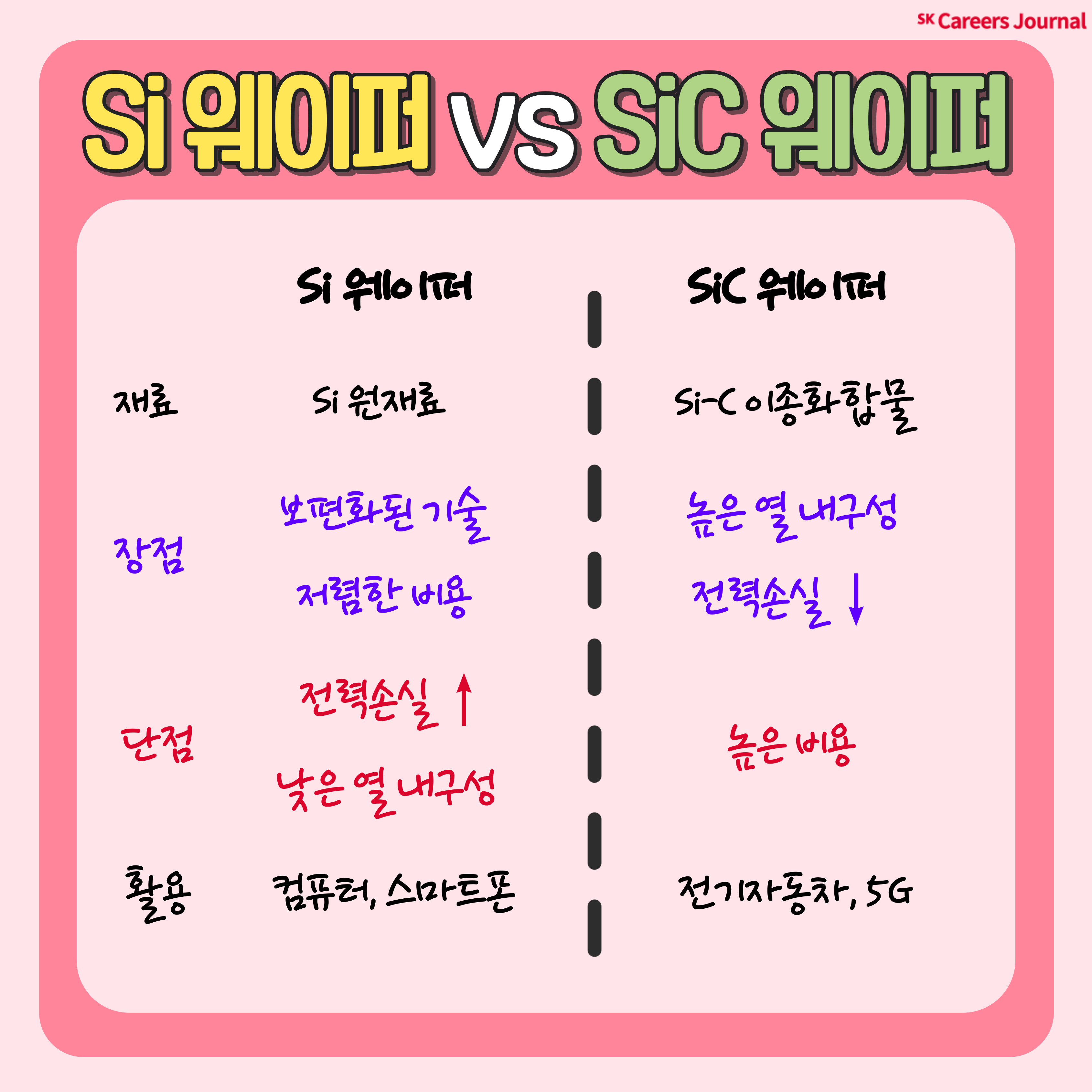 2020년, SK실트론은 미국 듀폰의 실리콘카바이드(SiC) 웨이퍼 사업부를 인수하였습니다. SK실트론이 SiC 웨이퍼 시장에 진출한 이유가 무엇일까요? 그리고 SiC 웨이퍼가 기존의 Si 웨이퍼와 다른 점은 어떤 것들이 있을까요? 이러한 궁금증을 해결하기 위해 SK실트론 CSS사업부 정예지 Pro님을 모셨습니다!