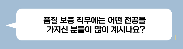 품질보증 조직에는 다양한 전공자들이 함께 어우러져 일합니다. 직접 공정 개선에 참여하기도 하고, 고객과 소통을 하는 경우도 있고, 생산 라인의 테스트 장비와 프로그램을 Set-up 하기도 해요. 다양한 시각에서 현 상황을 끊임없이 진단하고 개선하는 업무의 특성상 다양한 전공자들이 함께 일을 합니다.