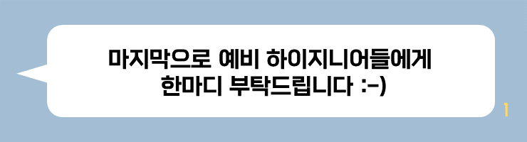 하이지니어가 되고자 노력하고 계시는 분들과 입사를 앞두고 긴장되는 마음에 떨고 있을 여러분께 이번 인터뷰가 응원과 위로가 되었기를 바랍니다. SK Hynix에서 다같이 웃으며 함께 성장할 수 있으면 좋겠습니다. 감사합니다!