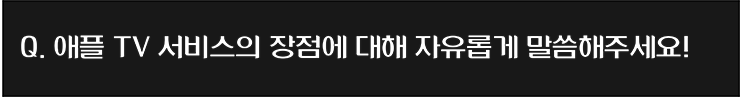 다양한 콘텐츠와 기능들이 돋보이는 애플 TV 서비스에 대해 알아봤습니다. 미디어 콘텐츠에 대한 수요가 나날이 늘어나는 요즘, 많은 국내 고객들에게 사랑받는 서비스가 되리라 기대합니다! 우리 모두 Apple TV를 통해 즐겁고 환상적인 경험을 해보는 건 어떨까요?