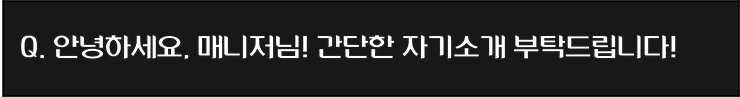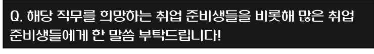 요즘은 너무 똑똑한 분들이 많이 입사해서 그분들과 함께 일하는 것이 오히려 영광인데요! 적극적이면서도 도전을 두려워하지 않는 자세, 고차원적인 시각으로 문제에 접근하는 자세를 갖는다면 어디서든 돋보이는 인재가 되리라 생각합니다!