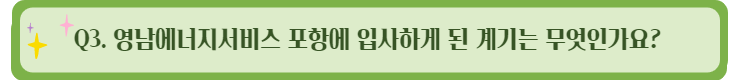 친환경 에너지에 관심이 있었기 때문에 관련 기업을 찾던 중 저희 영남에너지서비스㈜ 포항의 채용공고를 발견하여 지원하였습니다.