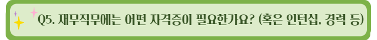 재무직무를 수행함에 있어 실무경험만큼 중요한 것이 없겠지만 회계, 세무에 대한 이론적 지식을 쌓는 것도 중요하다고 생각합니다. (전공수업, 회계/세무 자격증)