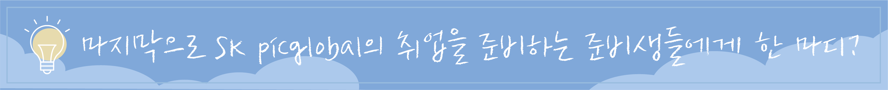 SK picglobal은 글로벌 회사로 성장하고 싶어 하는 곳입니다. 앞으로 계속 성장한다면 입사 후 여러분의 큰 꿈을 펼칠 수 있는 기회 또한 주어진다고 생각합니다. 그 큰 꿈을 주저하지 않고 와서 펼쳤으면 좋겠습니다.