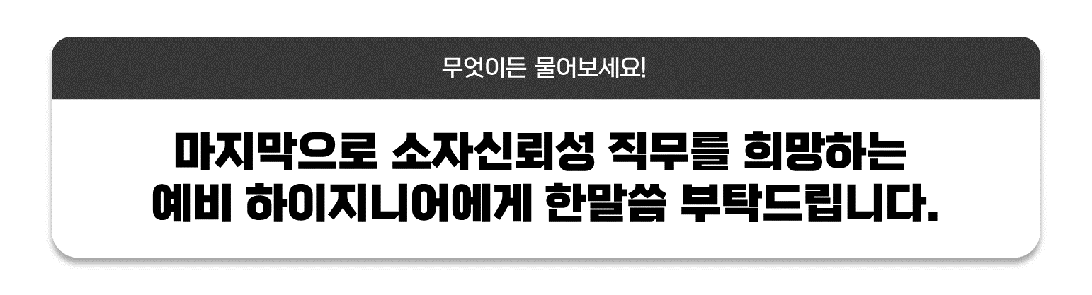 만약 소자 신뢰성 직무에서 일하게 된다면, 친구들에게 꼭 자랑하세요. 분명히 워라밸도 좋고 업무도 재미있고 자기 성장에도 도움이 될 뿐만 아니라 마지막으로 하는 만큼 성과를 낼 수 있는, 정말 부족함이 없는 것이 바로 소자 신뢰성 직무라고 생각해요.