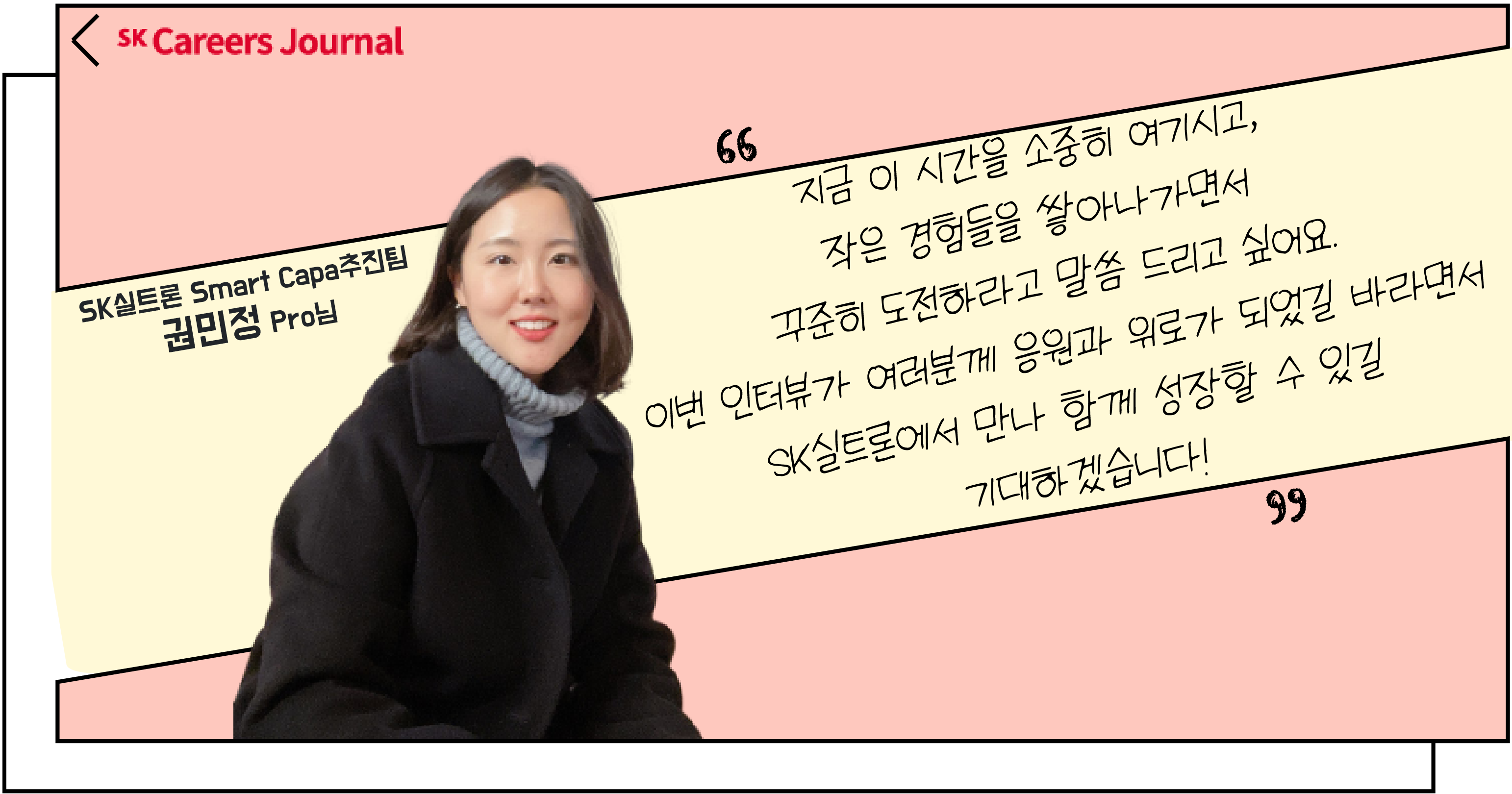 오늘은 기계 공학도로서 SK실트론 Smart Capa추진팀에서 근무 중인 권민정 Pro님과 함께 이야기 나눠보겠습니다!