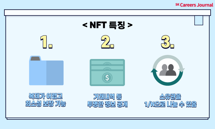 NFT에 대해 들어보신 분 계신가요? 다들 한번쯤은 들어봤을텐데요. 최근에는 NFT 기술을 활용해 디지털 그림, 옷 등을 사는 행위가 자주 이뤄지고 있는데, 도대체 NFT가 무엇이고, 어떤 특징을 가지고 있는지에 대해 지금부터 알아보도록 하겠습니다.