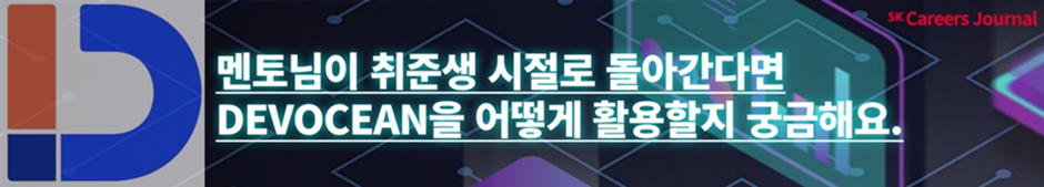 오늘 인터뷰를 통해서 DEVOCEAN 담당자님의 대학생활부터 SK텔레콤에서 근무하게 된 과정을 이야기해봤습니다. 이번 기사에서는 DEVOCEAN에 대한 소개와 함께 현직 개발자 전문가님들께 멘토링 받는 방법, DEVOCEAN을 취업에 활용하는 방법을 배웠는데요.