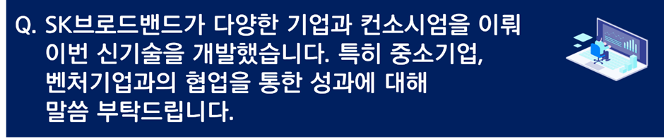 SK브로드밴드와 중소기업, 벤처기업은 서로 간의 상생 협력을 통해 이번 기술 개발을 이뤄냄으로서 win-win 할 수 있는 선순환 구조를 만들었다고 할 수 있습니다.