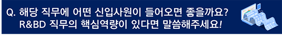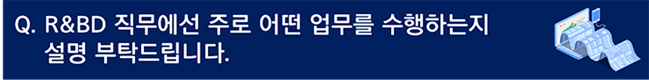 저는 현재 R&D, 더 나아가 R&BD 직무를 맡고 있는데요. R&BD란 기술 연구 개발부터 실제 상용화까지 수행하는 직무를 말합니다.