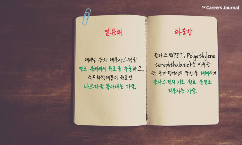 일단 기술의 이름부터 굉장히 어려워 보입니다. SK이노베이션 전문 보도채널인 SKinno News 에서는 열분해 기술과 해중합 기술을 다음과 같이 소개하고 있습니다.