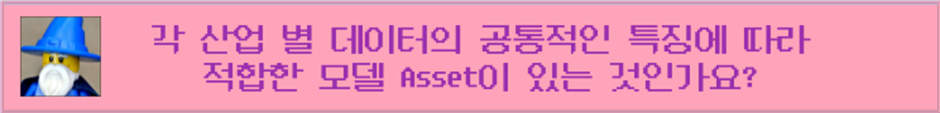 Q. 데이터 특성에 따라 자동으로 알고리즘을 선택해주는 C&C의 기술력이 놀랍습니다😊 각 산업 별 데이터의 공통적인 특징에 따라 적합한 모델 Asset이 있는 것인가요?
