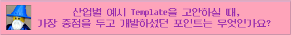 산업 별로 활용하는 기술과 특징이 모두 다를 수 있는데요. 산업 별 Template이란, 이러한 부분을 솔루션 적용 이전에 설계 과정에서부터 반영하고 가장 최적의 구성을 하기 위해 기초 밑그림을 그려 놓은 것이라고 이해하면 좋을 것 같습니다.
