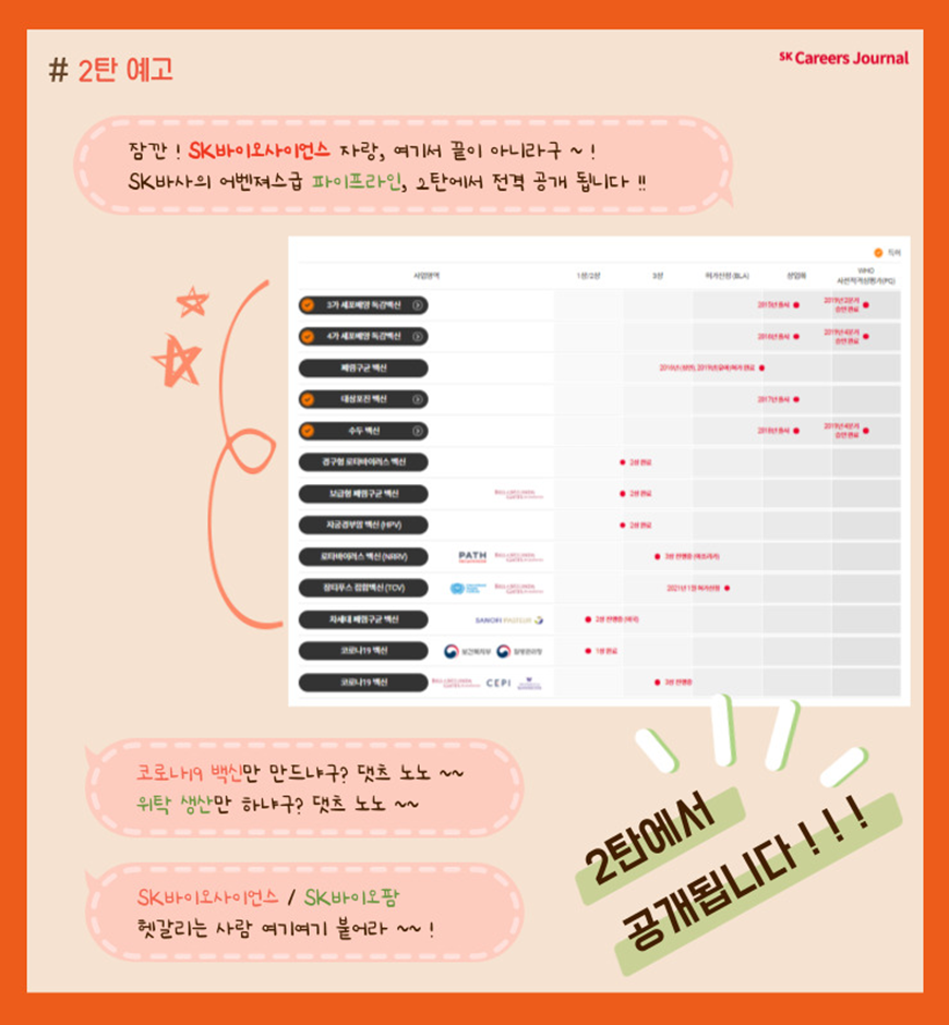 오늘은 신입CE가 들려주는 신규 관계사 이야기 1탄입니다! 지금부터 함께 SK바이오사이언스의 매력에 빠져보시죠! 😊