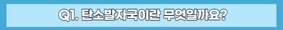 사람이 길을 걸어가면 그 자리에는 발자국이 남죠. 이와 마찬가지로 우리가 살아가면서 온실가스를 배출해 환경에 영향을 미치는 것을 상징적으로 ‘발자국’에 비유한 것입니다. 우리가 남긴 탄소발자국을 따라가다 보면 탄소배출량을 줄일 수 있는 실마리를 찾을 수도 있겠죠?