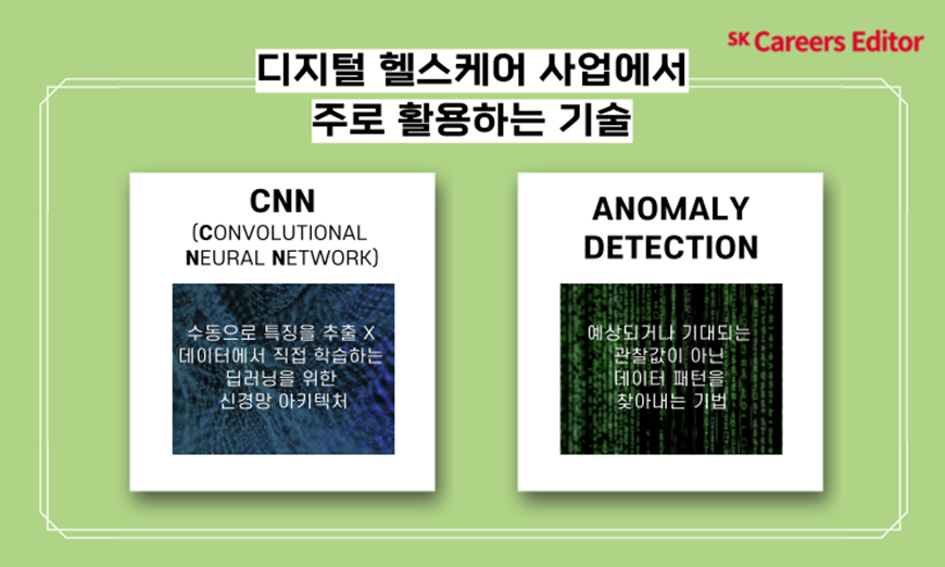 혹시 스마트워치 갖고 계신 분?👋👋 요즘 패션, 편의성과 함께 건강관리를 목적으로 스마트워치를 사용하는 인구가 늘어나고 있는데요. 일상생활뿐만 아니라 의학계에서도 '스마트'한 솔루션이 도입되고 있다는 사실, 알고 계셨나요? 인공지능 알고리즘, 빅데이터 등 여러 디지털 기술과 자산들이 의학적 진단과 신약 개발에 큰 공을 세우고 있는데요. 다양한 ICT 기업들이 헬스케어, 메디컬 분야에 진출하는 가운데, SK(주) C&C 역시 수년 전부터 디지털 헬스케어 분야에 도전장을 내밀고 괄목할 만한 성과를 내고 있습니다