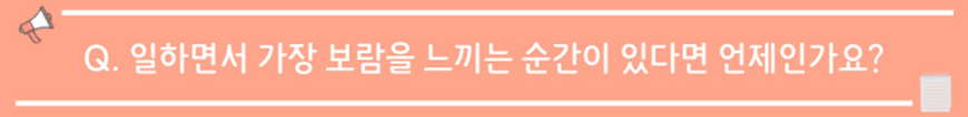 기자분들과 만나 우리회사에 대한 이야기를 굉장히 오래하는데, 그때 우리회사의 특징이나 장점, 사업의 비전 등을 구체적으로 설명합니다. 그런 내용들을 잘 전달해서 기자분들이 제대로 이해를 하고, 그 내용이 우리의 의도대로 기사로 제대로 나오게 됐을 때 업무성과가 나오게 됩니다. 이처럼 기자 네트워킹을 통해 기자분들과 친분도 쌓으며 우리회사에 대한 이해도도 높여서 결과적으로 기사가 잘 나오고 우리 회사에 대한 좋은 이미지를 전달하게 될 때 가장 보람을 느낍니다.
